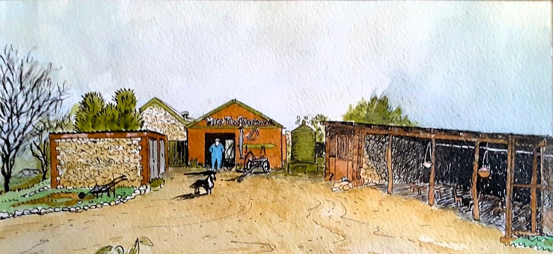 Mary’s workshop became the art gallery, John enclosed part of the equipment shed which became Elisabeth’s studio, and eventually they moved the gallery to the equipment shed and created a bedroom with kitchenette in what was once Mary’s workshop. After living in Murray Bridge for 25 years, John and Elisabeth sold the property to Rob and Stef in 2015. Elisabeth has left a permanent mark on the property with a lot of her art scattered around the gardens. Their daughter, Selina, is now an established artist in Hatherleigh and has created a similar home with her husband David.