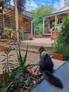 Cats love our ‘Bird TV’. Our rooms open up to the wider gardens with screen doors to keep your puss inside securely. If your cat is harness-trained, you are most welcome to take them for a walk. Let us know and we can help you plan a quiet walk away from other guests and animals.