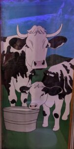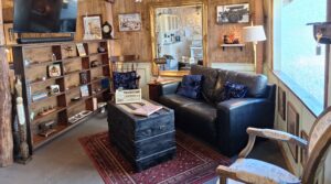 The building was built over the 1950s and 1960s as an open shed for farm equipment using local stone. The Studio was enclosed by the previous owners, John and Lis, and Lis used it as a painting studio. Rob has retained all the old stonework and the wooden beams, while insulating the ceiling and adding French doors to a private outdoor area. Stef’s touches include bespoke lead lighting, a homage to the Old Dairy in the form of Bessie and her calf, and an abundance of quirky objects, art and furnishings.